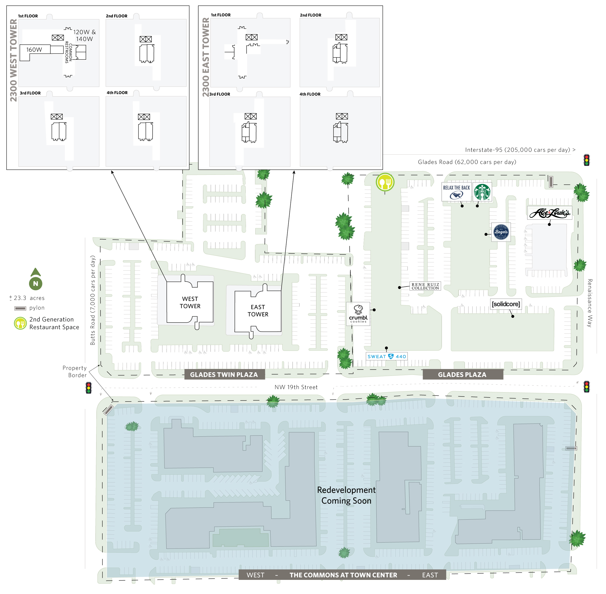 Glades Plaza is a mixed-use, retail and office property located in Boca Raton, FL. Glades Plaza is situated on 23.3 acres just off of I-95 along Glades Road and is anchored by national tenants including Starbucks, H&H Bagels, Solidcore and Crumbl Cookies. These tenants are complemented by various restaurants, boutiques, offices and service-based retailers. Within a 3-mile radius, more than 100,000 people with an average household income of $166,673 reside.