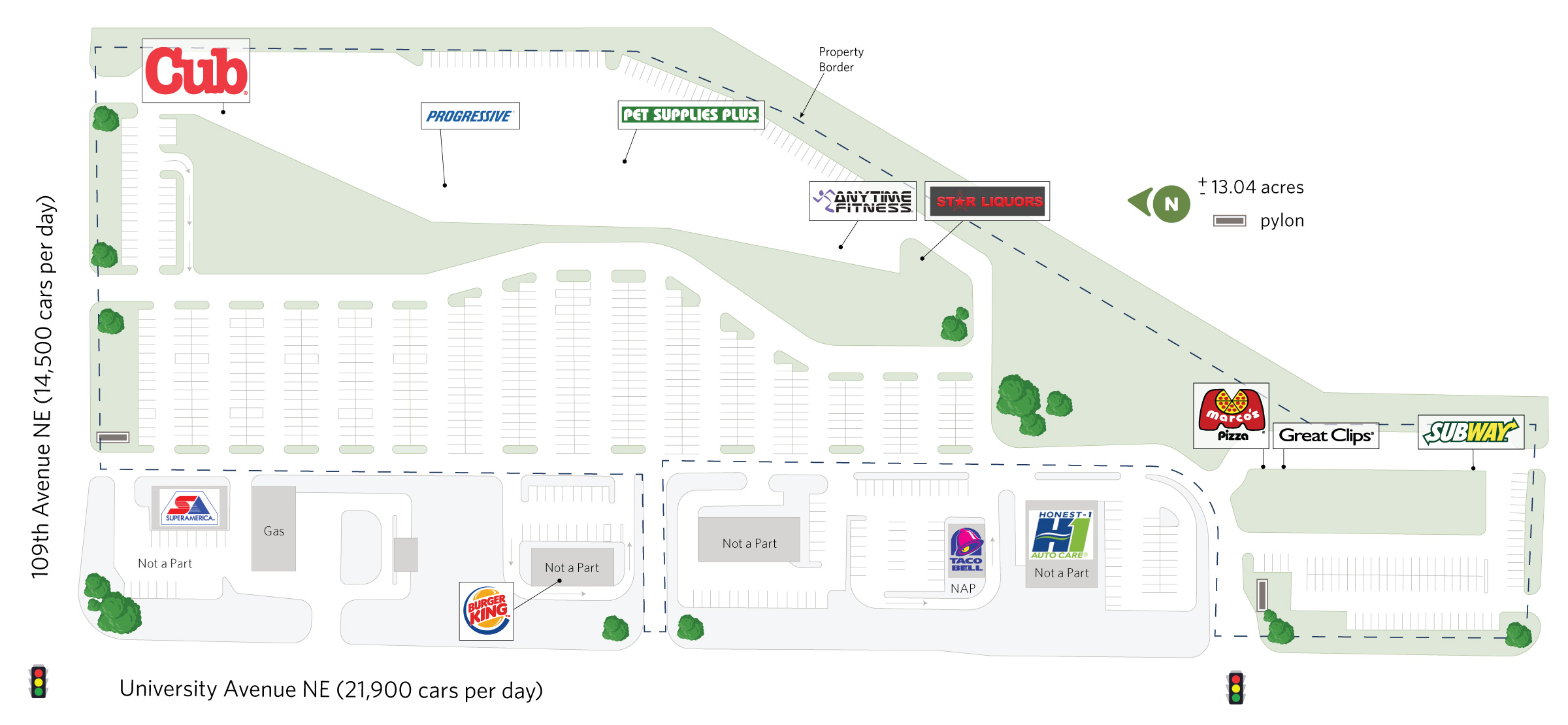 Major Tenants/National Retailers: Cub, Anytime Fitness, Star Liquors, Pet Supplies Plus, Progressive Insurance, Subway, Great Clips, Marco's Pizza
