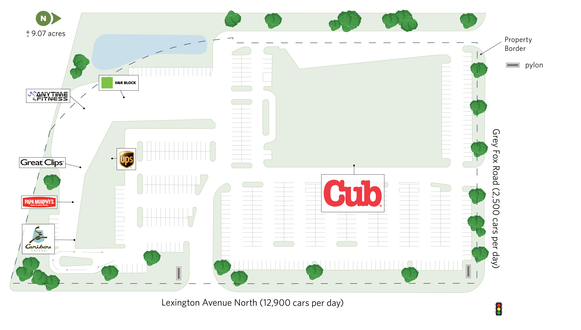 Major Tenants/National Retailers: Cub, Anytime Fitness, Caribou Coffee, Great Clips, The UPS Store, H&R Block, Papa Murphy's