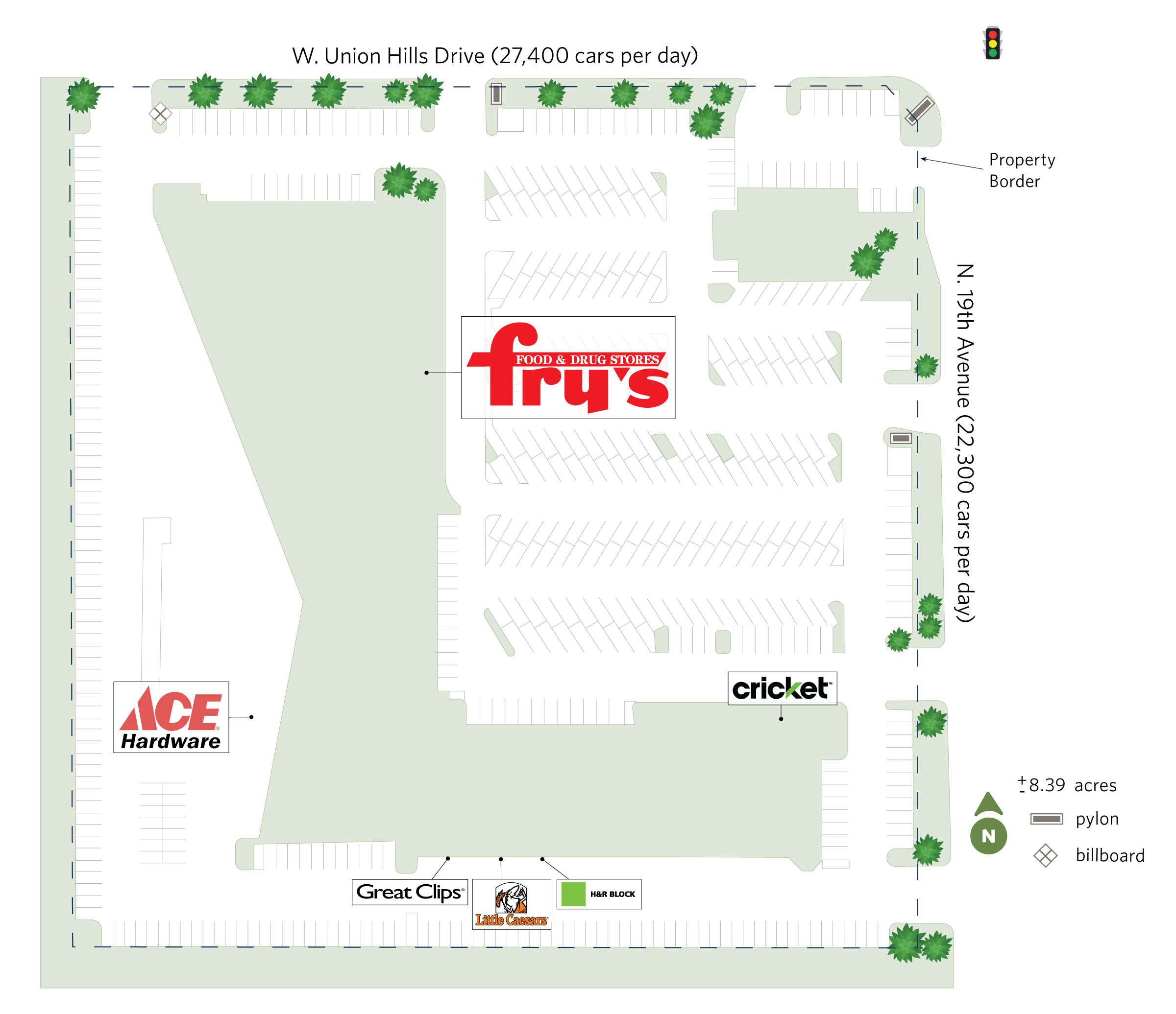 Major Tenants/National Retailers: Fry's Food & Drug, Ace Hardware, Great Clips, Little Caesar's, H&R Block, Cricket Wireless